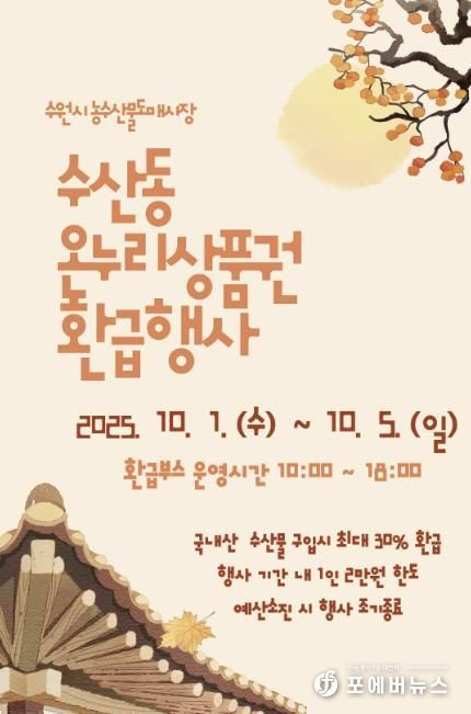 [ 포에버뉴스 김경순 기자 ] 수원시농수산물도매시장 수산동이 추석을 앞두고 온누리상품권 환급 행사를 연다.