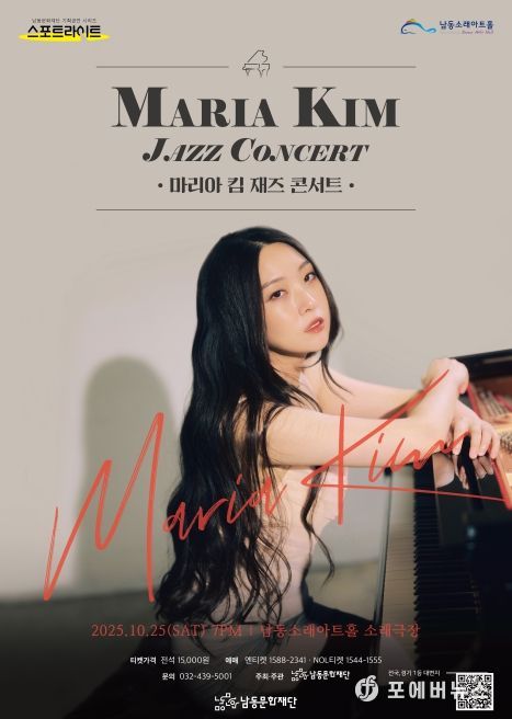 [ 포에버뉴스 김경순 기자 ] 인천시 남동구 남동문화재단은 10월 25일 19시 ‘마리아 킴 재즈 콘서트’를 남동소래아트홀 소래극장에서 개최한다고 25일 밝혔다.