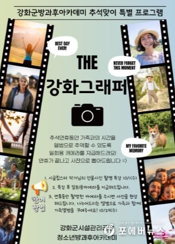 오는 1일, 강화군 출신 포토그래퍼의 인물사진 촬영 특강이 진행되며, 특강 참여 청소년에게 일회용 카메라를 지급한다.