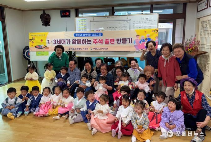 [ 포에버뉴스 김경순 기자 ] 부평구노인복지관은 민족의 명절인 추석을 앞두고 9월 22일부터 25일까지 4일동안, 부평구 내 6개소의 경로당에서 어르신과 지역 어린이집 원아들이 함께하는 ‘1․3 세대통합 송편만들기 행사’를 성황리에 마무리했다고 밝혔다.