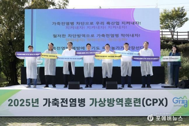 [ 포에버뉴스 김경순 기자 ] 가평군은 25일 자라섬 주차장에서 ‘2025년 가축전염병 가상방역훈련(CPX)’을 실시했다고 밝혔다. 이번 훈련은 가축전염병 발생 상황을 가정해 의심축 신고부터 긴급 방역조치까지 일련의 과정을 실제 상황처럼 시연하며 방역의식을 높였다.