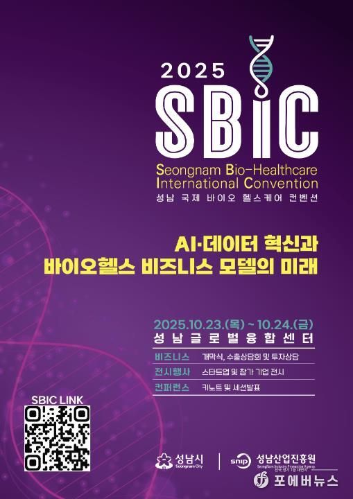 [ 포에버뉴스 김경순 기자 ] 성남시가 주최하고 성남산업진흥원이 주관하는 ‘성남 국제 바이오·헬스케어 컨벤션(SBIC 2025)’의 참관 사전등록이 시작됐다.