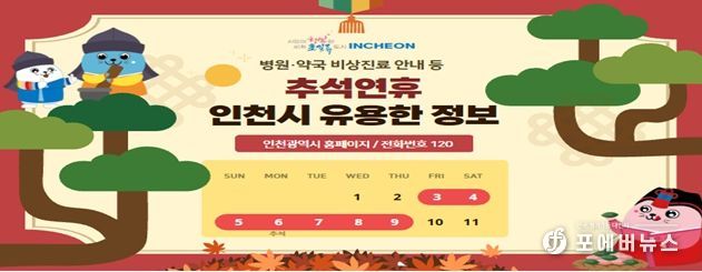또한 시민들이 건강하게 명절을 즐길 수 있도록 연휴 기간에도 인하대병원을 포함한 26개 응급의료기관의 응급실을 24시간 운영한다. 지정 병·의원과 약국도 일정에 맞춰 문을 열어 비상 의료체계를 유지한다.