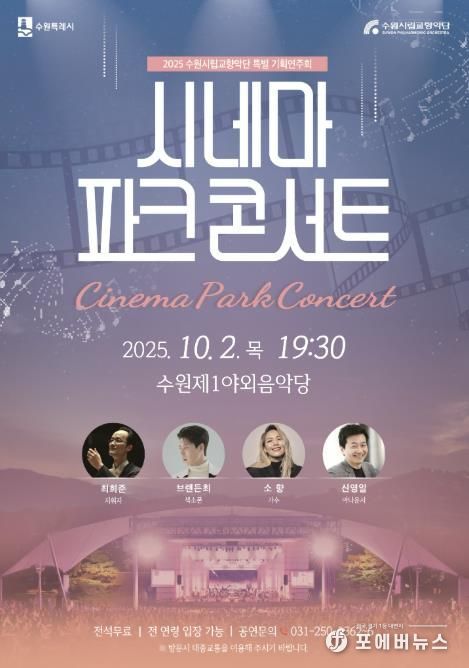 [ 포에버뉴스 김경순 기자 ] 수원특례시는 10월 2일 오후 7시 30분 수원제1야외음악당에서 ‘시네마 파크 콘서트’를 연다.