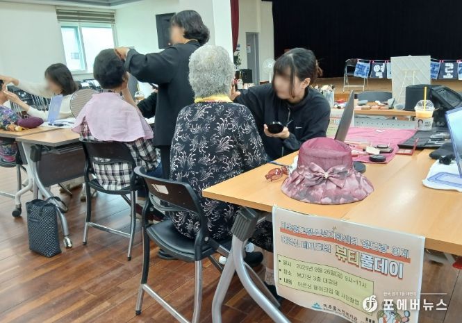 [ 포에버뉴스 김경순 기자 ] 인천 미추홀구학교밖청소년지원센터는 지난 26일 직업훈련을 받은 학교 밖 청소년 6명이 어르신을 대상으로 메이크업과 추억을 남길 수 있는 기념사진 촬영을 진행했다.