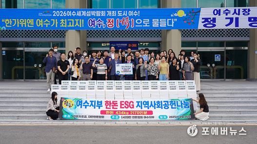 [ 포에버뉴스 오명숙 기자 ] 여수시는 (사)대한한돈협회 여수지부가 지난 26일 추석을 맞아 ESG 지역사회 공헌 활동의 일환으로 500만 원 상당의 한돈 434kg을 기탁했다고 밝혔다.