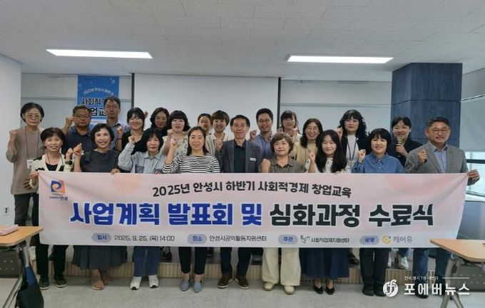 [ 포에버뉴스 김경순 기자 ] 안성시는 9월 25일 안성시공익활동지원센터 교육장에서2025년 하반기 사회적경제 창업교육 심화과정 수료식을 성황리에 개최했다.