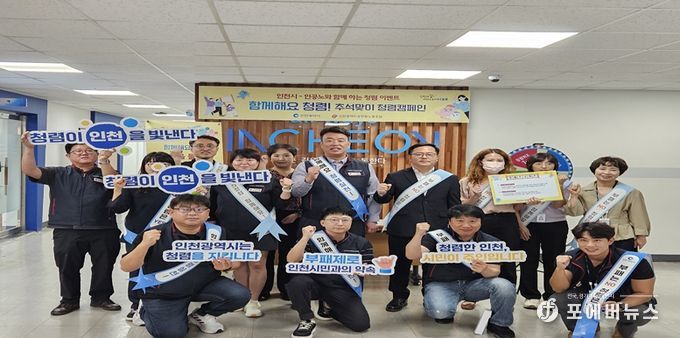 [ 포에버뉴스 김경순 기자 ] 인천광역시는 인천시공무원노동조합과 함께 오는 9월 29일 본청 지하 구내식당 앞에서 추석맞이 청렴캠페인을 개최했다고 밝혔다.