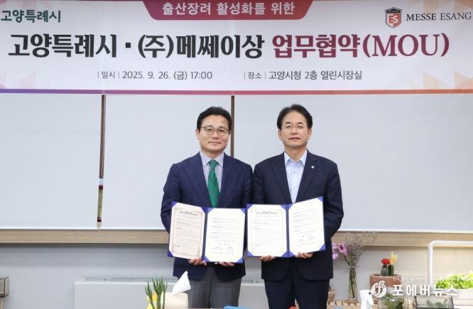 [ 포에버뉴스 김경순 기자 ] 고양특례시는 국내 대표 전시 주최사 ㈜메쎄이상(대표 조원표)이 지자체와는 최초로 출산 장려 활성화 및 건강한 양육 문화 조성을 위해 손을 잡았다고 밝혔다.