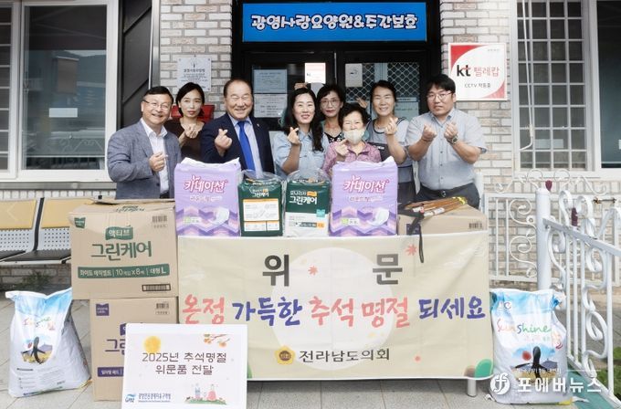 [ 포에버뉴스 오명숙 기자 ] 전라남도의회 안전건설소방위원회 강정일 의원(더불어민주당·광양2)은 민족 최대 명절인 추석을 앞두고 9월 29일, 광양 지역 내 사회복지시설을 찾아 따뜻한 위문과 격려를 전했다.