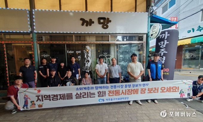 [ 포에버뉴스 김경순 기자 ] 인천 미추홀구시설관리공단은 지난 29일 추석 연휴를 앞두고 지역 경제 활성화와 소외된 이웃 지원을 위해 용현시장에서 ‘전통시장 동행 장보기’ 행사를 개최했다.