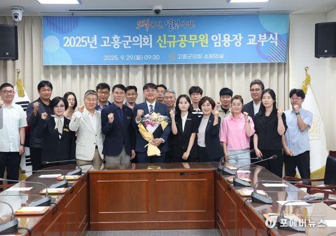 [ 포에버뉴스 오명숙 기자 ] 고흥군의회는 소회의실에서 2025년 9월 29일 자 인사발령에 따른 신규 공무원 임용장 교부식을 가졌다.