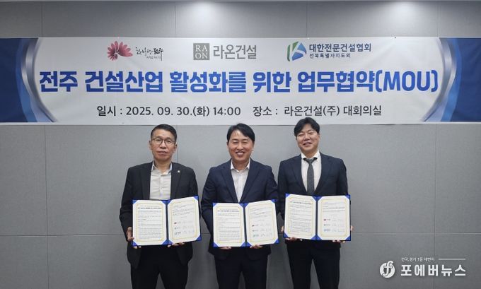 특히 라온건설㈜는 전주지역 내 주택사업이 처음인 만큼 이날 협약을 바탕으로 지역건설산업 활성화에 적극 협조할 것을 약속하기도 했다.