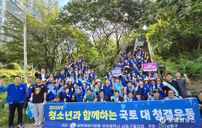 [ 포에버뉴스 김경순 기자 ] 인천시 남동구 바르게살기운동 남동구협의회는 100여 명의 회원 및 주니어클럽 봉사단체 초․중․고 학생들과 구월1동 아시아드 근린공원 및 인근 상가 주변에서 ‘국토대청결운동’을 실시했다고 1일 밝혔다.