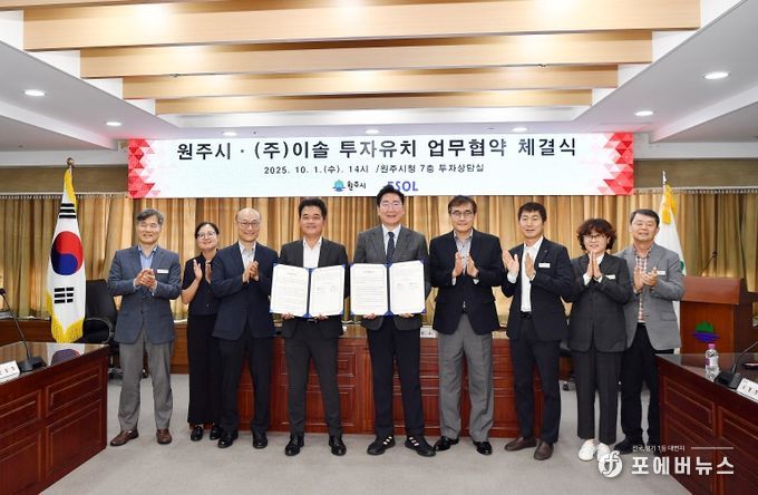 [ 포에버뉴스 방미정 기자 ] 원주시는 10월 1일 오후 2시, 시청 7층 투자상담실에서 ㈜이솔(대표 김병국)과 투자유치 협약(MOU)을 체결했다. 이번 협약은 총 505억 원 규모의 투자로, 부론일반산업단지에 소형 방사광가속기와 첨단 EUV 반도체 검사장비 연구·생산시설을 구축하는 사업이다. EUV(Extreme Ultra-Violet)는 반도체 초미세 공정(7nm 이하)에 필수적인 광원이다.