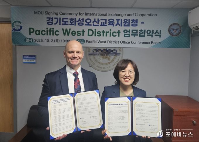 [ 포에버뉴스 김경순 기자 ] 화성오산교육지원청은 10월 2일 미국방부교육청 대회의실에서 미국 Pacific West District와 국제교류협력 업무협약(MOU)을 맺고, 학생 맞춤형 글로벌 교육 프로그램을 본격적으로 추진한다.