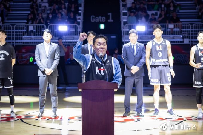 [ 포에버뉴스 김경순 기자 ] 이재준 수원특례시장이 4일 수원KT소닉붐아레나에서 열린 ‘2025-2026 프로농구 KBL 홈 개막전’에서 개막선언을 했다.