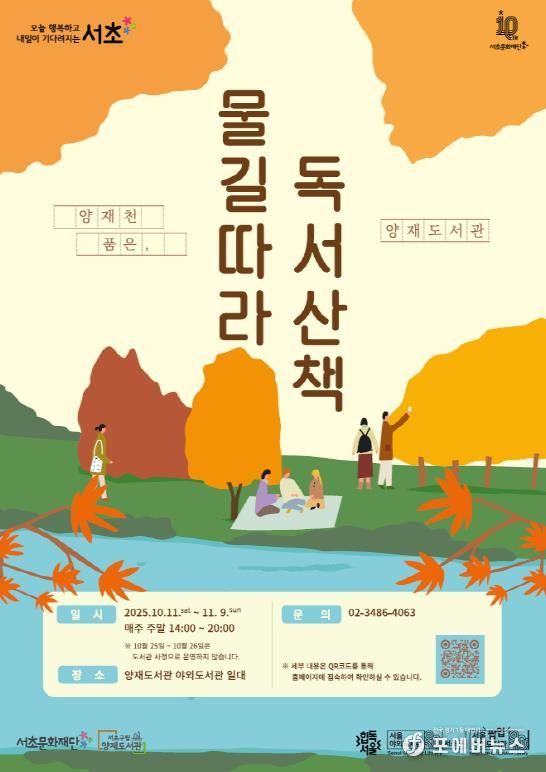 [ 포에버뉴스 김경순 기자 ] 서울 서초구에서는 가을의 시원한 바람을 느끼며 독서의 즐거움을 만끽할 수 있을 전망이다. 서초구립양재도서관은 오는 11일부터 11월 9일까지 매주 토, 일요일에 ‘오솔숲 야외도서관’과 양재천변에서 '양재천 품은 양재도서관'을 운영한다고 밝혔다.