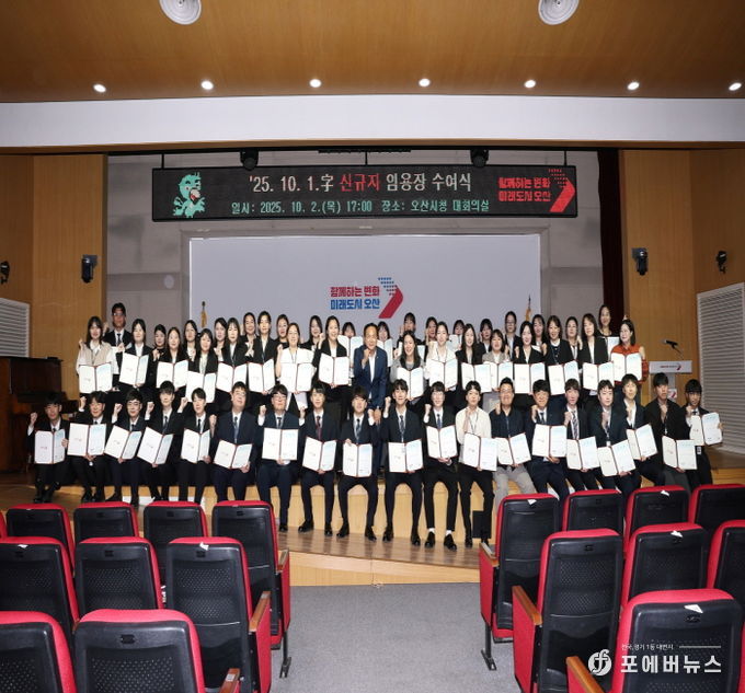 [ 포에버뉴스 김경순 기자 ] 오산시는 지난 10월 2일 오산시청 대회의실에서 2025년 신규 임용 공직자 52명을 대상으로 임용장 수여식을 개최했다고 밝혔다.