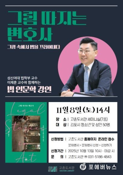 [ 포에버뉴스 김경순 기자 ] 김포시 고촌도서관에서 오는 11월 8일 오후 2시부터 4시까지 예술작품 속에 숨은 법률 이야기를 주제로 한 인문학 강연을 운영한다.