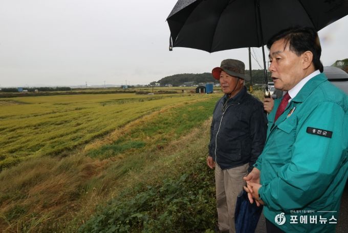 [ 포에버뉴스 김경순 기자 ] 옹진군수는 지난 6일에 내린 집중호우와 강풍으로 인해 벼 도복 피해를 입은 북도·영흥면을 방문하여 피해 상황을 점검했다.