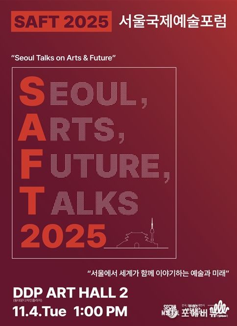 [ 포에버뉴스 김경순 기자 ] 서울문화재단은 11월 4일 오후 1시, DDP(동대문디자인플라자) 아트홀 2관에서 ‘서울국제예술포럼(SAFT, Seoul·Arts·Future Talks)’을 처음 개최한다. 이번 포럼은 “서울에서 세계가 함께 이야기하는 예술과 미래(Seoul Talks on Arts & Future)”를 주제로, 동시대 문화예술과 정책의 흐름 속에서 글로벌 도시 서울의 정체성과 미래 전략을 논의하는 자리다.