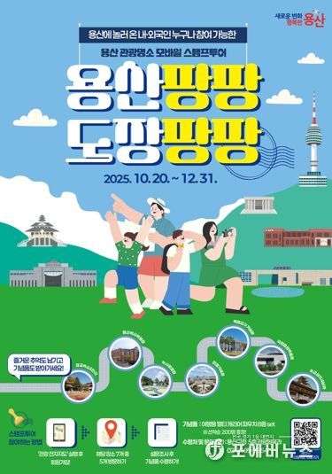 [ 포에버뉴스 김경순 기자 ] 서울 용산구가 오는 20일부터 12월 31일까지 용산의 주요 관광명소를 모바일로 즐길 수 있는 ‘용산 팡팡! 도장 팡팡! 2025 용산구 관광명소 모바일 스탬프투어’를 운영한다.