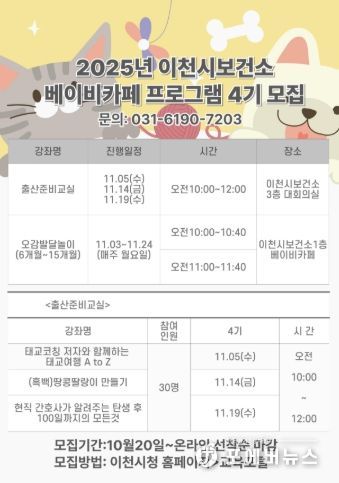 이천시장은 “아이와 부모가 함께 성장하는 따뜻한 육아 환경을 조성하기 위해 지속적으로 다양한 프로그램을 운영하겠다”라며 시민들의 많은 관심과 참여를 당부했다.