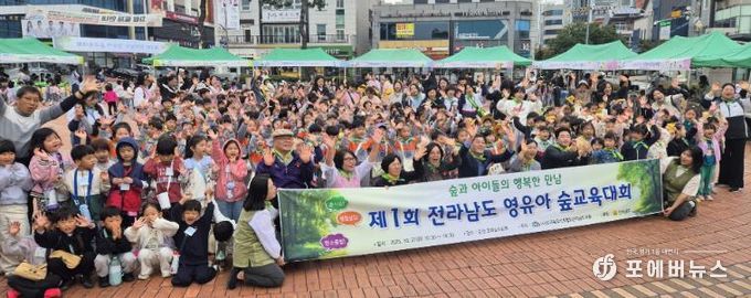 [ 포에버뉴스 오명숙 기자 ] 전라남도는 (사)한국숲유치원협회 전남지회와 21일 순천 조례호수공원 원형광장에서 영유아가 숲과 자연의 소중함을 체험하고, 생명 존중 가치와 탄소중립을 실천하는 제1회 전남도 영유아 숲교육대회를 개최했다.
