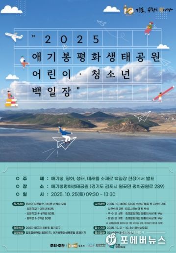 [ 포에버뉴스 김경순 기자 ] 매월 특별한 이벤트가 열리는 애기봉평화생태공원에서 오는 25일 ‘2025 어린이‧청소년 백일장’을 개최한다. 이번 행사는 어린이와 청소년들이 자연 공간에서 창작하며 김포의 미래를 상상할 수 있게 마련된 시민 참여형 문화행사로, 걷기 행사와 역사 강의, 공연 및 전시 등 다양한 프로그램이 함께 진행될 예정이다.