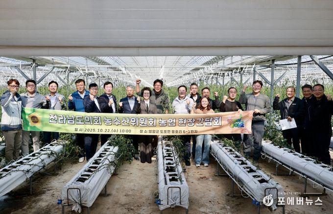 [ 포에버뉴스 오명숙 기자 ] 전라남도의회 농수산위원회(위원장 김문수, 신안1)는 지난 10월 22일 영암군 도포면 방울토마토 재배 시설 원예농가와 시종면 농업근로자 기숙사 신축 현장을 방문하여 현장의 목소리를 청취하고, 농업인들과의 소통간담회를 통해 실효성 있는 지원 방안 마련에 나섰다.
