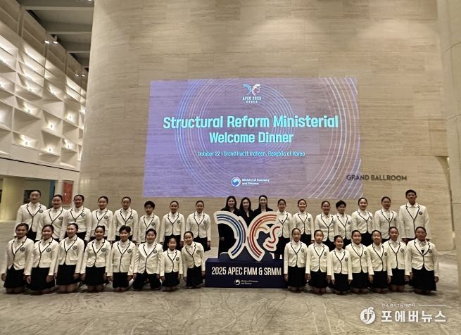 [ 포에버뉴스 김경순 기자 ] 인천 계양구립소년소녀합창단이 10월 22일 영종도 그랜드하얏트인천에서 열린 ‘APEC 구조개혁장관회의’ 환영 만찬 무대에 올라 아름다운 하모니를 선보였다.