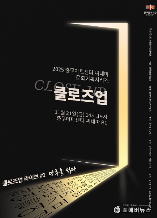 중구문화재단 관계자는 “앞으로도 지역민과 영화·공연예술을 잇는 다층적 기획을 통해, 충무아트센터 씨네마를 지역의 문화향유 공간이자 예술인들의 창작 무대로 확장해 나가겠다”고 전했다.