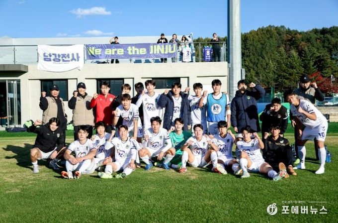 [ 포에버뉴스 사공선 기자 ] 진주시민축구단이 지난 1일 강원도 평창군 진부면민체육공원 축구장을 찾아 치른 2025 K4리그 31라운드 원정경기에서 2 – 0 무실점 승리로 평창유나이티드FC를 꺾었다.