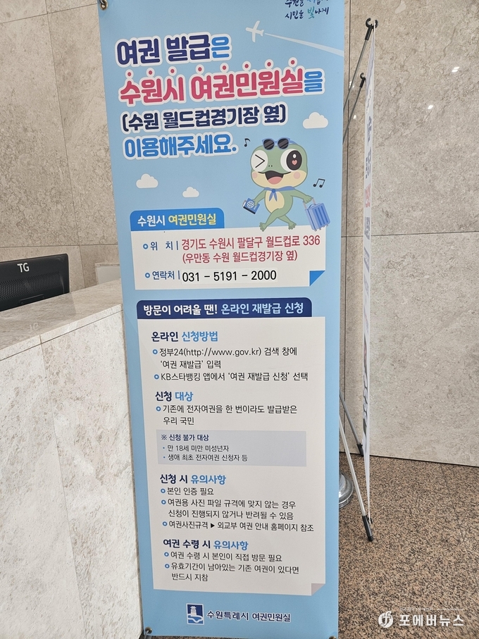 또 다른 시민은 “여권 민원실이 따로 있는 건 알지만, 인구와 민원 수요가 많은 시청에 여권 민원실이 없는 것은 비효율적”이라며 “인근 시에서 운영하는 것처럼 수원시청 안에도 하나쯤 있어야 하지 않느냐”고 지적했다.