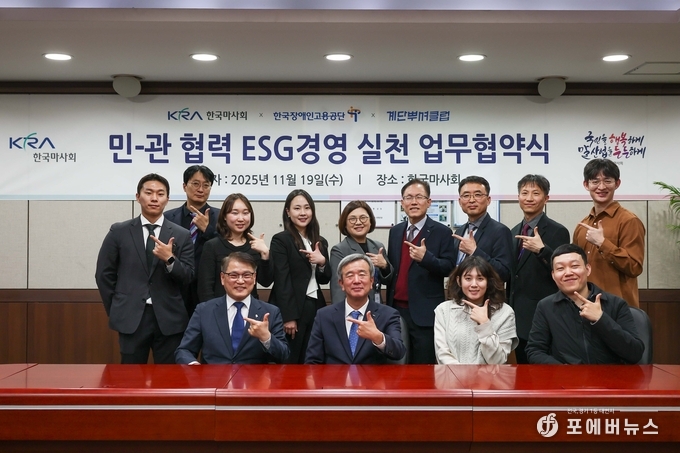 [ 포에버뉴스 김경순 기자 ] 한국마사회는 지난 19일 본관 대회의실에서 한국장애인고용공단, 사단법인 계단뿌셔클럽과 함께 ‘이동약자의 이동권 개선 및 ESG 경영 실천을 위한 사회공헌 업무협약(MOU)’을 체결했다고 밝혔다.