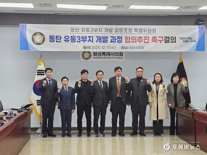 화성시의회는 17일 오전 9시 30분, 시의회 대회의실에서 ‘동탄 유통3부지 개발 과정 협의 촉진 촉구 결의문’을 발표했다.