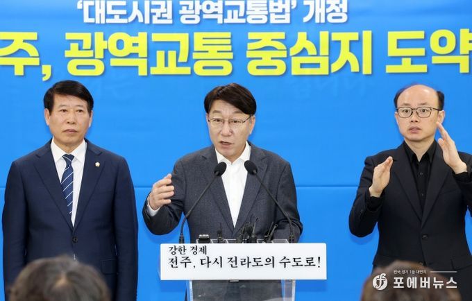 이어 지난 10월에는 전주를 중심으로 익산·군산·김제·완주가 대도시권 범위에 포함되는 전주권으로 신설되는 내용의 시행령 개정까지 이뤄지면서, 광역도로·광역철도·환승센터 등 광역교통시설에 대해 국비 30~70% 지원을 받을 수 있는 제도적 기반이 확정됐다.