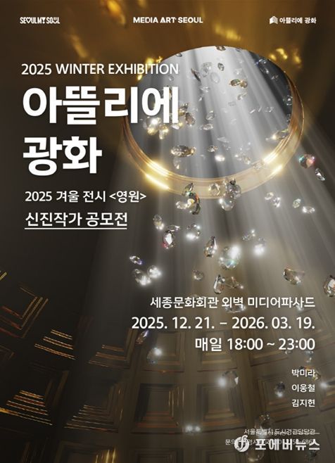 먼저 세종문화회관 정면과 측면부 외벽에 선보이는 대형 미디어파사드 '아뜰리에 광화'는 겨울 시즌을 맞아 ‘신진작가 공모전’ 전시를 선보인다.
