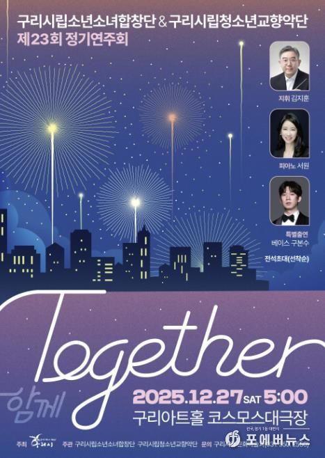 [ 포에버뉴스 김경순 기자 ] 구리시는 오는 12월 27일 오후 5시, 구리아트홀 코스모스 대극장에서 구리시립소년소녀합창단과 구리시립청소년교향악단이 함께하는 '제23회 정기연주회 Together–함께'를 개최한다.