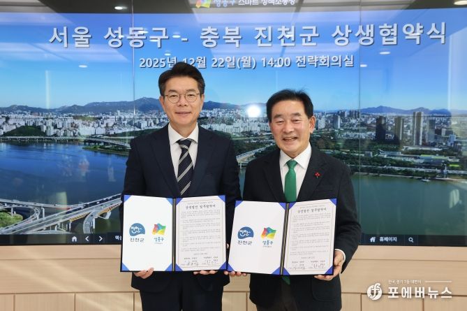 [ 포에버뉴스 사공선 기자 ] 충북 진천군과 서울시 성동구는 22일 성동구청에서 상생협력 업무협약을 체결했다.