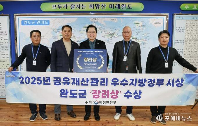 [ 포에버뉴스 오명숙 기자 ] 완도군이 행정안전부가 주관한 ‘2025년 공유재산 총조사 및 관리 분석·진단’ 평가에서 우수 지방자치단체로 선정되어 장려상을 수상했다.
