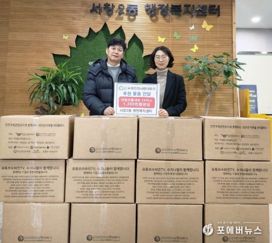 [ 포에버뉴스 김경순 기자 ] 인천시 남동구 서창2동 행정복지센터는 (사)수와진의 사랑더하기로부터 어려운 이웃을 위한 겨울 선물세트 50상자를 기부받았다고 19일 밝혔다.