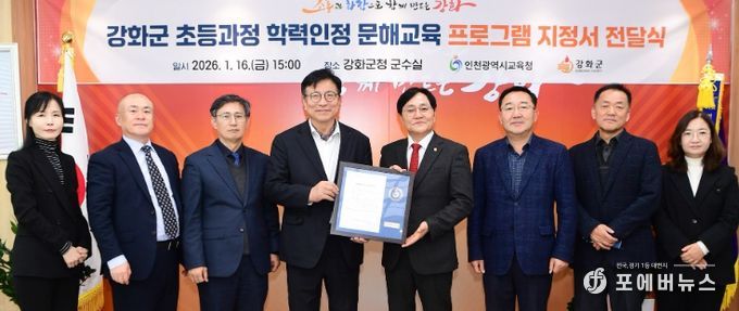 [ 포에버뉴스 김경순 기자 ] 인천광역시교육청은 강화군 내 저학력 성인의 기초학력 지원을 위해, 강화군청을 ‘초등 학력인정 문해교육 프로그램’ 운영기관으로 지정하고, 16일 지정서를 전달했다.