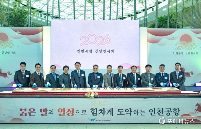 [ 포에버뉴스 김경순 기자 ] 인천국제공항공사는 19일 오후 인천공항 제2여객터미널 교통센터에서 ‘2026년 인천공항 신년 인사회’를 개최했다고 20일 밝혔다.