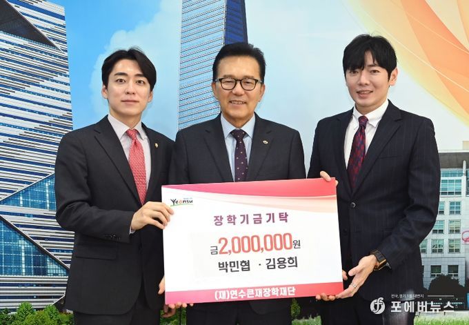 [ 포에버뉴스 김경순 기자 ] 연수큰재장학재단은 지난 20일 박민협 연수구의회 의원과 김용희 인천시의회 의원이 지역 인재 육성과 교육 발전을 위해 200만 원을 기탁했다고 밝혔다.