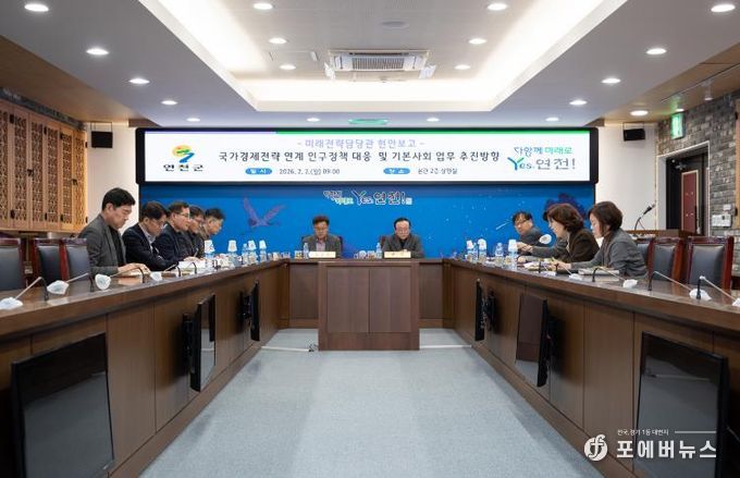 [ 포에버뉴스 김경순 기자 ] 연천군은 지난 2일 군청 상황실에서 국가 경제성장전략과 연계한 인구정책 대응방안 및 기본사회 업무 추진방향을 논의하는 현안회의를 개최했다.