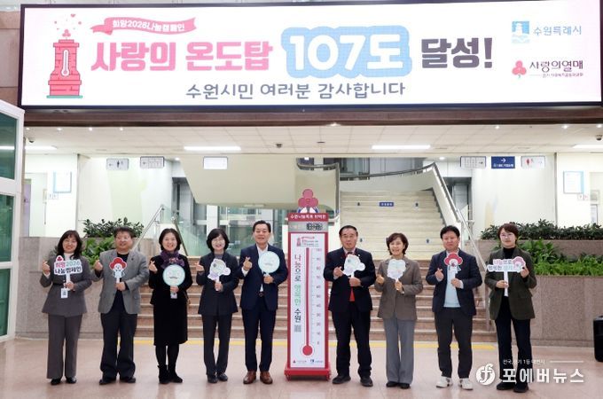 이번 사랑의 온도탑 캠페인은 연말연시 이웃 돕기를 위한 시민들의 자발적인 참여로 진행됐으며, 목표액 10억 원 대비 9억 1천만 원을 모금해 달성률 91%를 기록하는 성과를 거두며 지역사회 나눔 문화 확산에 기여했다.