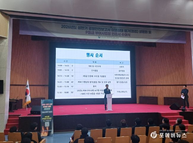 [ 포에버뉴스 김경순 기자 ] 중부지방노동청 수도권 중대산업사고 예방센터는 2월 11일 오후 2시부터 안산시 단원구 소재 중소벤처기업연수원 대강당에서 '2026년 상반기 공정안전관리(PSM) 이행상태 평가(점검) 사업 설명회'를 개최했다.