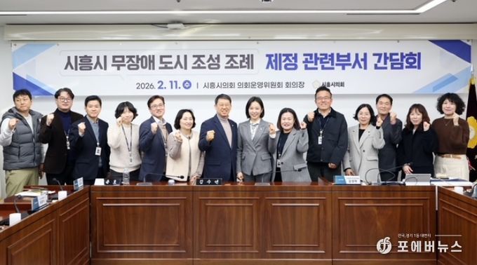 [ 포에버뉴스 김경순 기자 ] 경기 시흥시의회는 지난 11일 의회운영위원회 회의장에서 '시흥시 무장애 도시 조성 조례' (대표발의: 김수연 의원) 제정을 위한 간담회를 개최했다. 이번 간담회는 장애인, 고령자, 임산부 등 모든 시민이 물리적·심리적 장벽 없이 안전하고 편리하게 생활할 수 있는 도시 환경을 구축하기 위해 마련됐다.